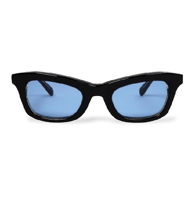 吊り上がったブローラインと、アンダーはウェリントン的な落ち着きある形状を持ったボリューミーで個性的なデザイン。