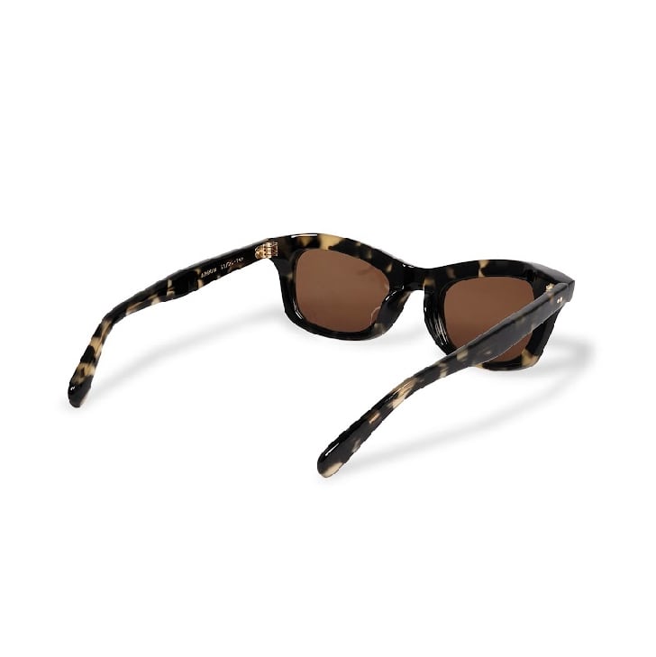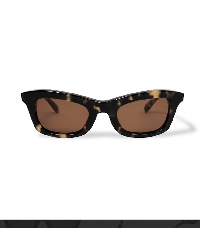 吊り上がったブローラインと、アンダーはウェリントン的な落ち着きある形状を持ったボリューミーで個性的なデザイン。