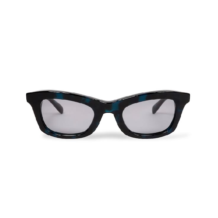 吊り上がったブローラインと、アンダーはウェリントン的な落ち着きある形状を持ったボリューミーで個性的なデザイン。