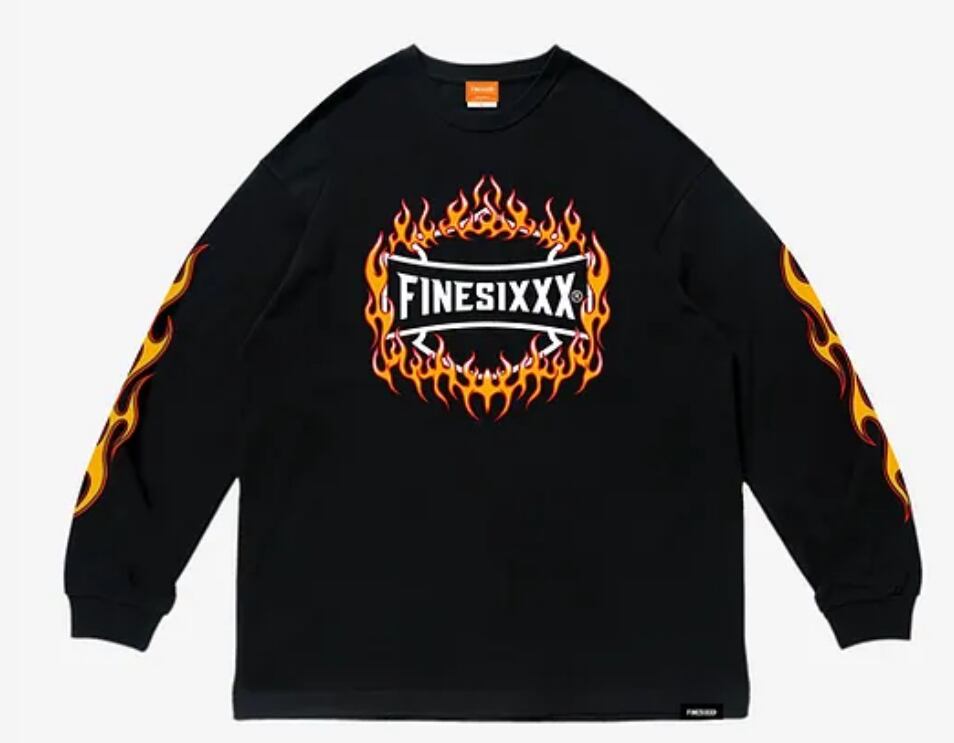 オープンエンド糸を採用した肉厚の生地にブラック・ホワイト・スミブラックの3色カラー展開。両袖にもフロントのグラフィックを踏襲したオリジナルのフレイムスパターンプリント、左裾にピスネーム付。